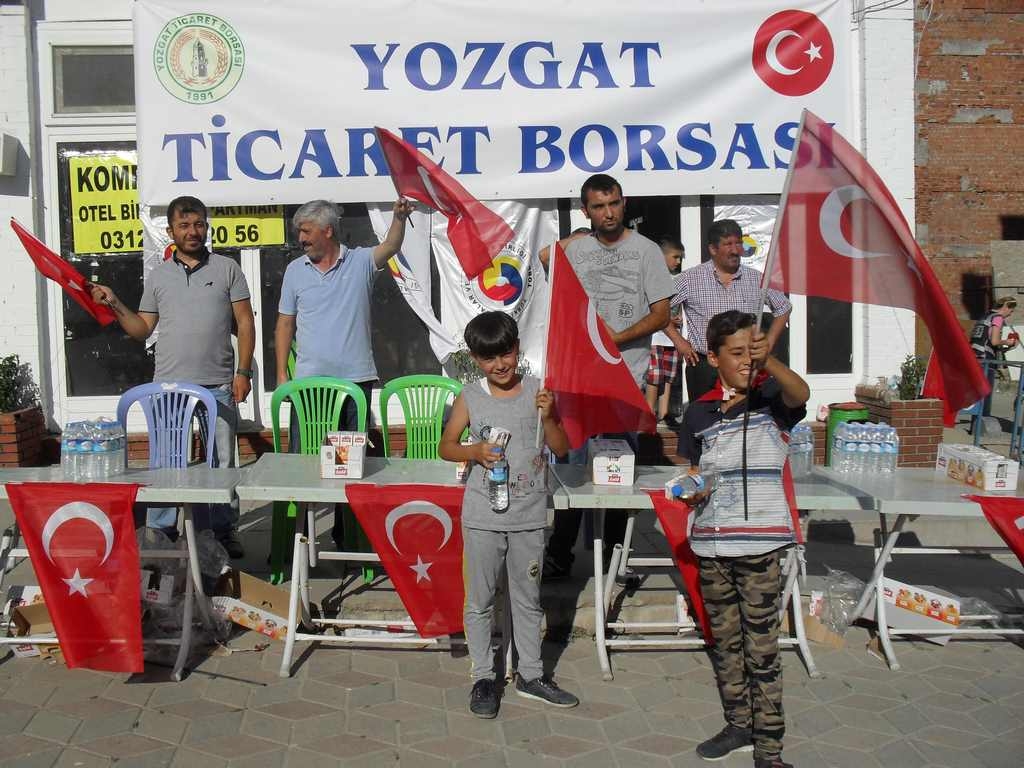Yozgat Ticaret Borsası tarafından 15 Temmuz FETÖ askeri darbe girişiminden itibaren Cumhuriyet Meydanında demokrasi nöbetini sürdüren vatandaşlara su ve meyve suyu ikramı yapıldı.